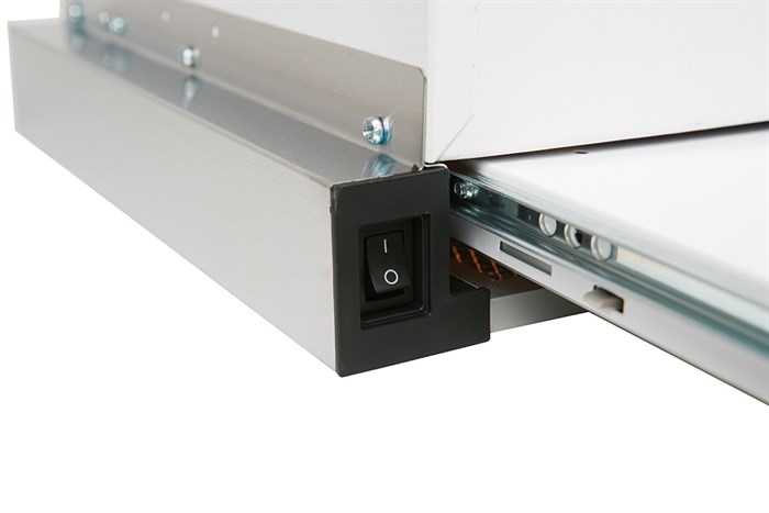 Máy hút mùi cài đặt 2 tốc độ hút tùy chọn theo nhu cầu sử dụng khi đun nấu, dễ dàng tùy chỉnh bằng nút gạt cơ bên cạnh máy